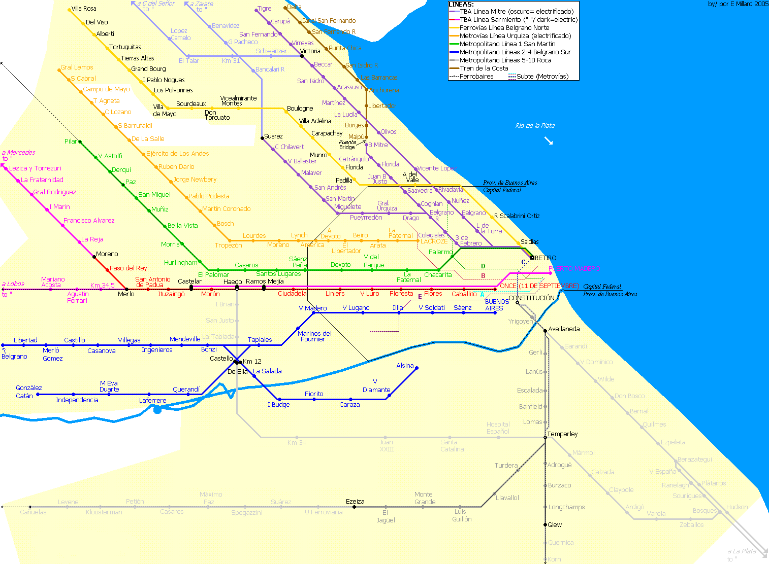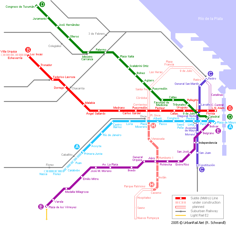 | Buenos Aires Premetro (tram) map | Heritage tram location map | Buenos Aires metro map | Buenos Aires rail map (suburban trains) | |