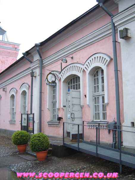 The trip is a short one of around 10-15 minutes but is a great break from pounding the streets as the little boats (or the big plastic new one) chug across the harbour and venture out into the open sea where the swell is a little disconcerting in such a small vessel as MV Tor. The radiators inside were pumping out heat at full blast for all their worth which soon dried our soaked coats and trousers; the move was looking better all the time! We were soon nosing into the little landing stage on Suomenlinna and I craned my neck to catch a glimpse of the brewpub. I’d read that it was the first thing you walked into after disembarking the ferry and, sure enough, there it was – a long low white building about 10 metres from the ferry terminal! Result!