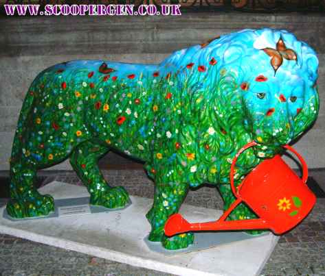 We meandered through the thronging streets until we came to the town hall. This huge gothic pile commands the main square and reminded me of Oostende cathedral; maybe it was the colour of the stone or the style? Whatever, it’s a magnificent example of gothic architecture and, when we ventured closer, it seemed to be open for visitors! There seemed to be some sort of "Munich loves children" event under way and although without children, we decided that we’d like a look at the inside of the building and ventured through the vaulted archway into the inner courtyard. Once inside, the architecture was even more spectacular with a round tower and medieval windows. If anyone visited Manchester when cow parade was on this summer, then think the same concept – but with lions! It seems that "Leo parade" is to hit München in 2005, and there were a few prototypes scattered around…