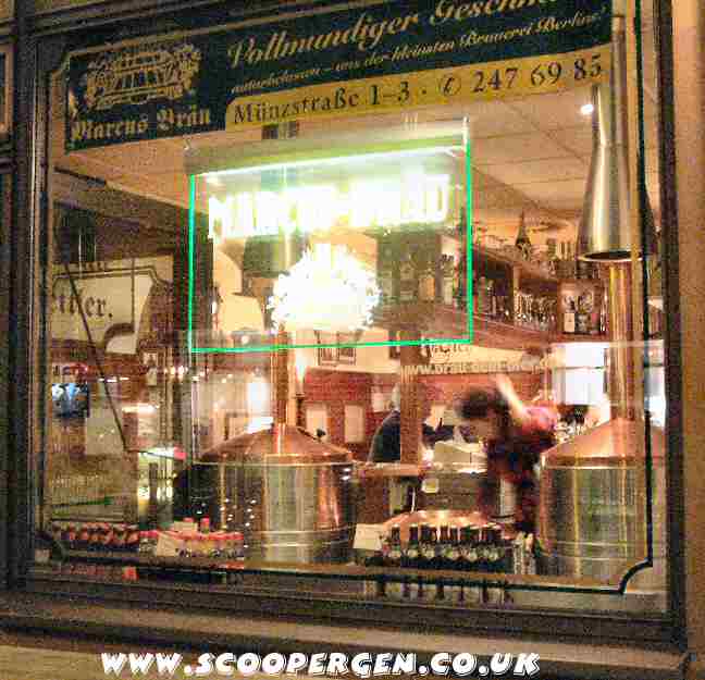 Given the size of the brewery I didn’t think the beers would be up to much but I was proved wrong by both of them; the helles was very cloudy, spicy and hoppy with a rich malty flavour and some spicy hop in the rich malt finish, whilst the dunkel had a juicy sweetness yet was reasonably bitter and hoppy with toasty malt which belied it’s typically-Berlin copper colour. To say we were impressed by the beers would be understating how surprised we’d been by the quality of beer produced from this “toytown” kit in the front window, and also the unusualness of the place as a whole; I decided that if we experienced a more unusual brewpub anywhere else I’d show my arse in Burton’s window! (That’s an old Northwich saying according to my dad).
