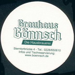 Bonn doesn't really have it's own style of beer and only one of it's three brewpubs is in the city centre. It makes a pleasant morning's trip to see the, frankly, limited sights but IMO the beer scene isn't really worth making a special effort for.