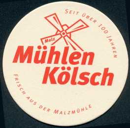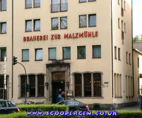 Brauerei Zur Malzmühle, Heumarkt 6. (Mon-Sat 1000-0000, Sun 1100-0000). From Heumarkt tramstop (trams 1/7/8/9), head away from the Dom. Malzmühle is close by at the end of the square with "Afri Cola" on the front in large letters; the brewery is next door. The stone doorframe is all that remains of the original building that was flattened in the war – thanks once again to the RAF. One of the 3 classic kölsch beers, served from a wooden cask, and has a loyal local following.