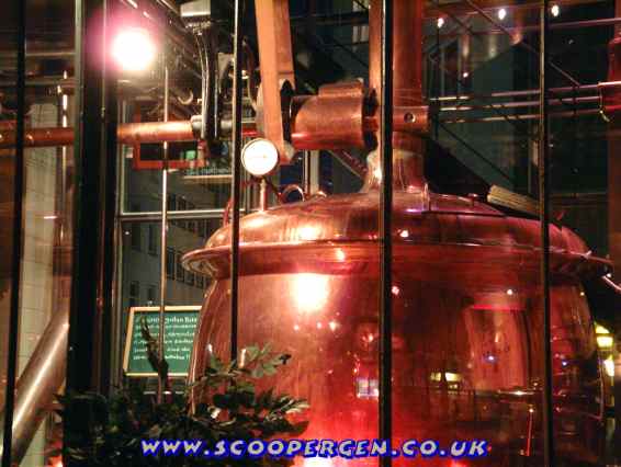 We had agreed that we would try Weißbrau again as I particularly wanted to scoop in their schwartzbier – maybe the only dark beer in Köln? Filled with trepidation, we took a shortcut to the pub and were pleased to find it was only 5 minutes from the hotel; talk about being our local! It was also totally different than the previous evening; like a pubby Jekyll and Hyde, in that it was almost deserted with no singing students to deprive me of scoops! In we went, and the huge copper brewkit looked very impressive against the outside wall. We sat at a table near to it and a very sociable waiter appeared to ask what we wanted – the first time that day. We ordered the kölsch and very good it was too; golden and quite fruity with a hoppy finish. The weißbier was actually quite good for Northern Germany and not too bubblegummy, but the star of the show was the schwarzbier that the menu claimed to be based on a Czech black lager. I’m not sure about that, but it was a very good beer with a subtle chocolatey flavour and a dry, coffeeish aftertaste.