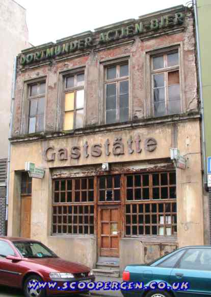 Reluctantly, we paid up and left Päffgen and took a tram over the bridge to the Deutzer Freiheit stop. Siegesstraße didn’t look very promising but we persevered and soon we found the bar – closed for summer holidays, according to a note on the door! Gutted! The pub was due to be closed anyway on Tuesday, but the good news was that it re-opened Wednesday so we would be able to sample it’s ambience before heading home. The place looked a right beast with cracked walls, old brewery signs and surrounded by modern concrete carbuncles. We peered in through the windows and could see one room full of tables and not much else – we had to come back on Wednesday and scoop this place in!