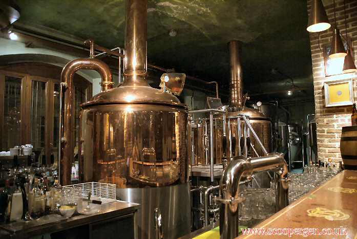 walls, brewery adverts and a shiny copper kit behind the bar. The beers are