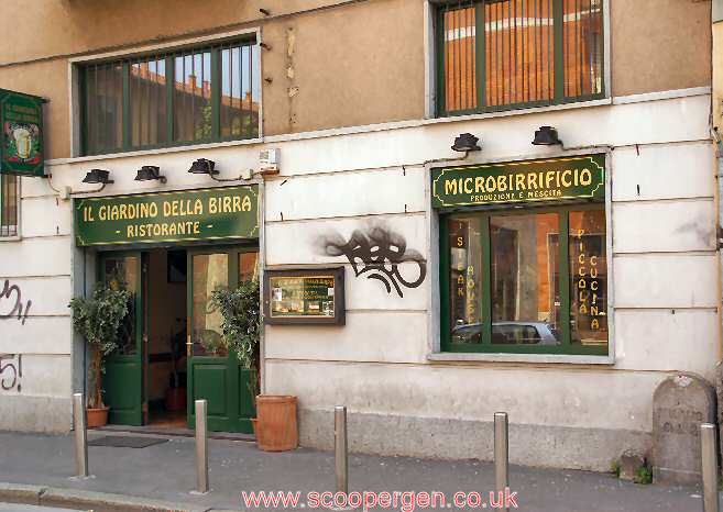 After another hour or so of walking around Milan’s admittedly beautiful streets we were ready for some food and, in my case at least, some well-earned scoops! Taking tram 5 to it’s eastern terminus of Ortica we followed my map towards the Giardino della Birra brewpub; what I wasn't prepared for was for the road to vanish into a subway! The map making no sense we decided to press on regardless and I was mightily relieved when we emerged from the subway and could see where we were on my admittedly inaccurate map; lesson learnt, never trust Microsoft Autoroute when you’re trying to find brewpubs!