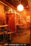It was a long, cold walk and we were glad to reach the pub. The brewplant was obvious in the front window, but it didn’t look like a normal brewpub to me – where was the bar? Inside it resembled more of a cafeteria, but we were totally clueless as to what to do; the large open-plan room was almost full of tables save for an area that was stacked with food and some kitchens preparing pizza and pasta. I asked one of the till-Adas what the procedure was and she kindly explained that you simply helped yourself and paid at the till, just like a cafeteria!